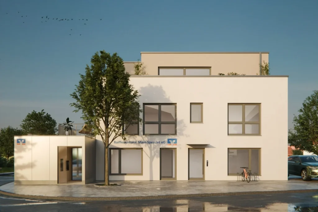 Visualisierung Mehrfamilienhaus mit Bankfiliale